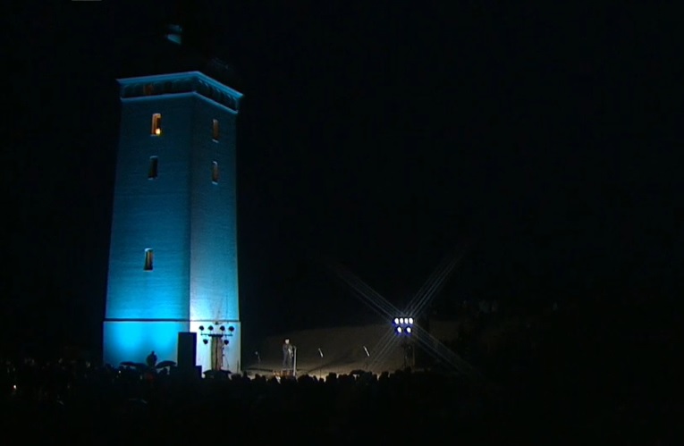 Guidet af korsang og flagermuslygter blev gæsterne ved dagens indvielse budt velkommen, allerede på vejen op til Rubjerg Knude Fyr.