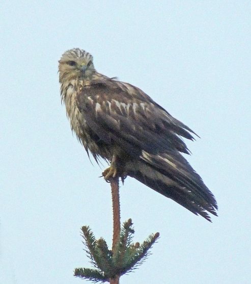 På årets første dag i 2018 kom den trofaste blå kærhøg da også og hilste på fra en trætop i Kjul. Den holder ifølge Hans Høilund-Carlsen til i klitplantagerne ved Uggerby og Lilleheden. Her har den angiveligt været siden slutningen af oktober.