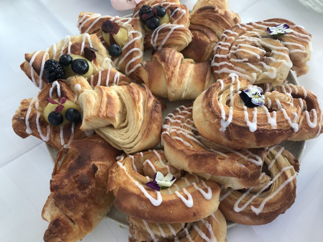 Jeg kunne ikke lade være med at spørge om jeg måtte have lov til, at medbringe morgenkager til morgenbordet og det måtte jeg heldigvis. ? Jeg havde om morgenen lavet croissanter med nougat, marcipan og hindbær, spandauer med marcipan og vaniljecreme og kanelsnegle!