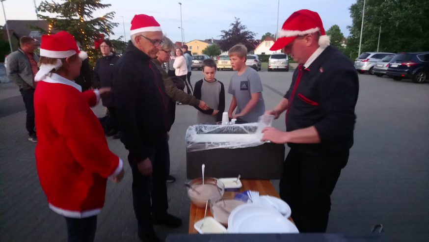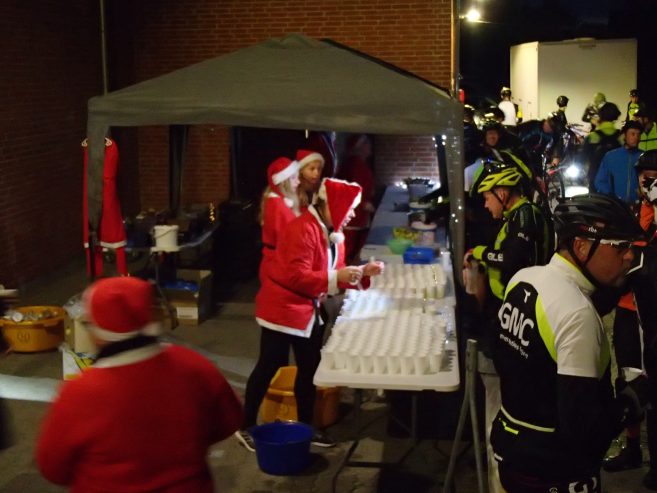 Der var en fantastisk stemning på parkeringspladsen, hvor mange af cykelrytterne benyttede sig af, at blive fotograferet sammen med julemænd eller julepiger.