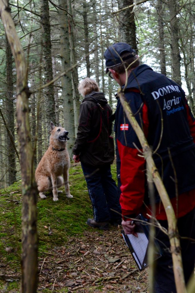 Rundering: Det vil sige hunden skal finde 3 personer som er gemt i skjul, dette skal forgå i et kuperet skovareal, her lægges der også vægt på hund og føres samarbejde. Figuranterne skal findes inden for 25 min.