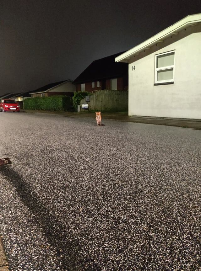 Til gengæld kunne det se ud, som om en ræv er godt på vej til at blive domesticeret på Lillehedenvej i Hirtshals. Billederne her er taget af Mathias Lynnerup.