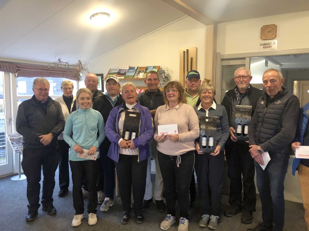 De 52 deltagere var fordelt i 4 rækker, alt efter handicap, og turneringsledelsen takkede Erling Christensen Møbler, for de fine præmier, som butikken havde sponsoreret. Der var gavekort til de tre bedste i hver række.