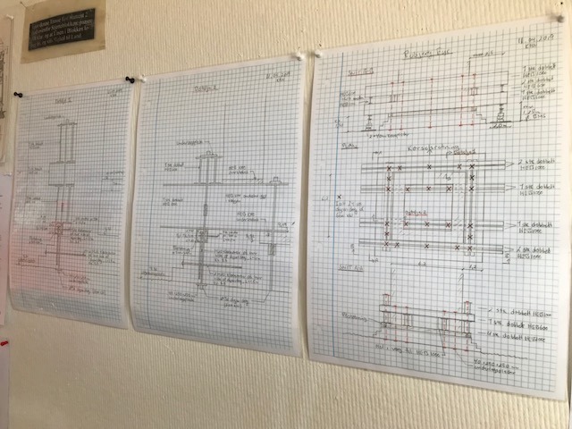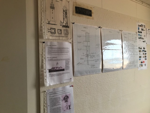 I murermester Kjelds Pedersens skurvogn hænger der præcise tegninger af hele arbejdet med at forstærke fundamentet og gøre fyret klar til at blive flyttet. Ved siden af hænger flere papirer, der fortæller om fyrets historie.