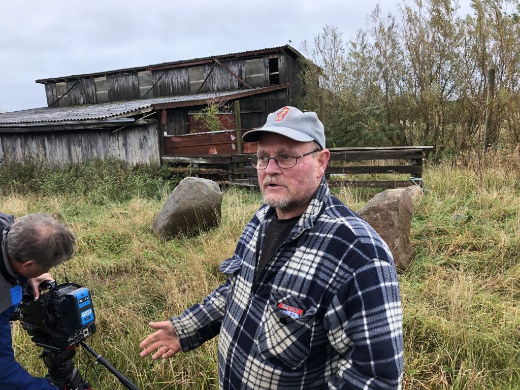På et af billederne nedenfor ses fiskeskipper Per Jensen i færd med at vise TV2 Nord nogle af de kæmpesten, han har “fanget”, fordi de hollandske bomtrawlere flytter rundt på vrag og kæmpesten. De ændrede bundforhold skader danske fiskeres grej for titusinder af kroner i denne tid.