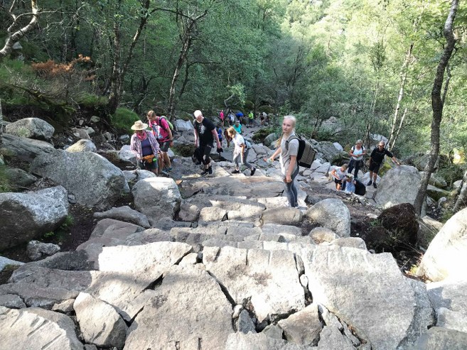 Herfra følger man en afmærket vandrerute til Prædikestolen. Ruten op og ned er i de seneste år blevet udbedret flere gange. Der er desuden både søer med bademulighed og rastepladser langs stien.