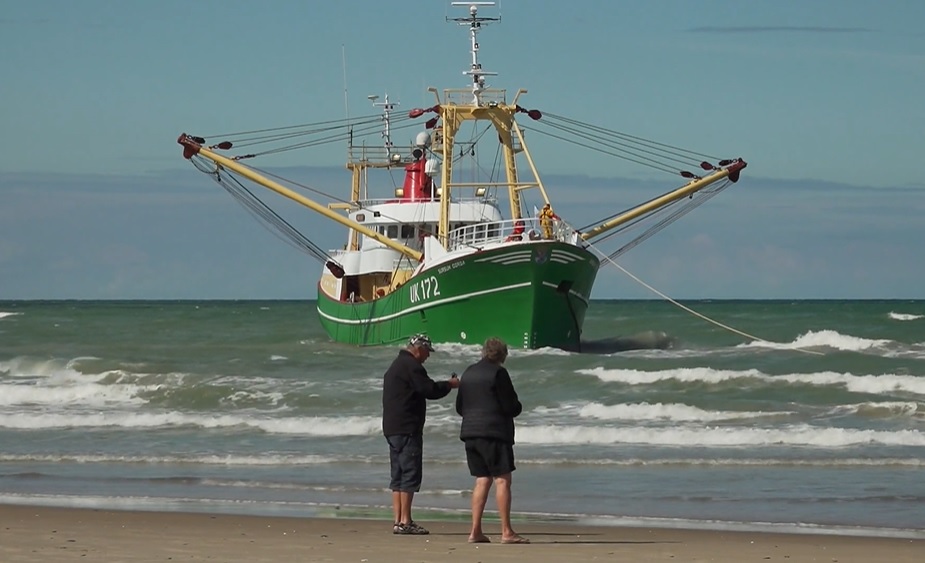 I fjerde forsøg lykkedes det. En af de andre hollandske fiskefartøjer i vandet forsøgte derefter at trække bomtrawleren fri, men forsøget var forgæves. Den rokkede sig ikke ud af stedet. Den ligger der altså endnu.