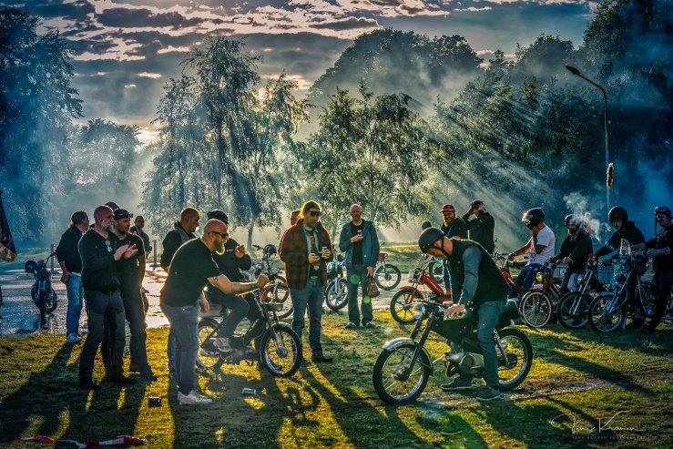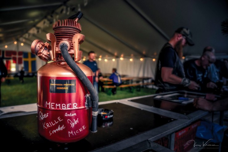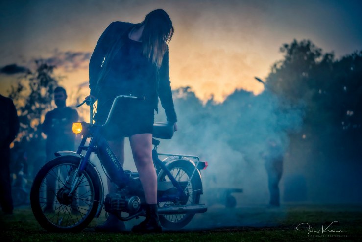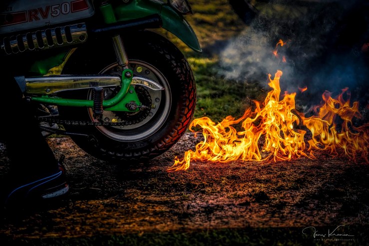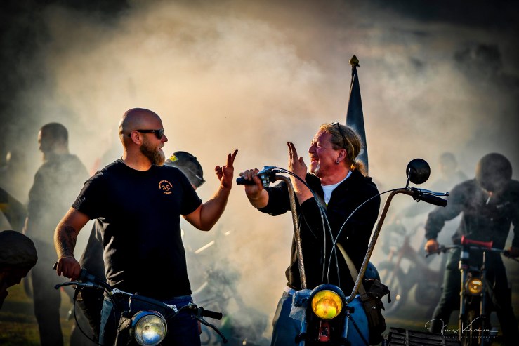 Så er Bindslev Knallerttræf & Stumpemarked i gang ved Tannisbugthallen. Lugten af brændt gummi og totakt benzin ligger derfor til tider tungt hen over festpladsen bag Cafe Tannisbugt. Festen fortsætter lørdag og er startet med en bette fælleskøretur. Klimakrise snakker vi lige nu ikke om i Bindslev.