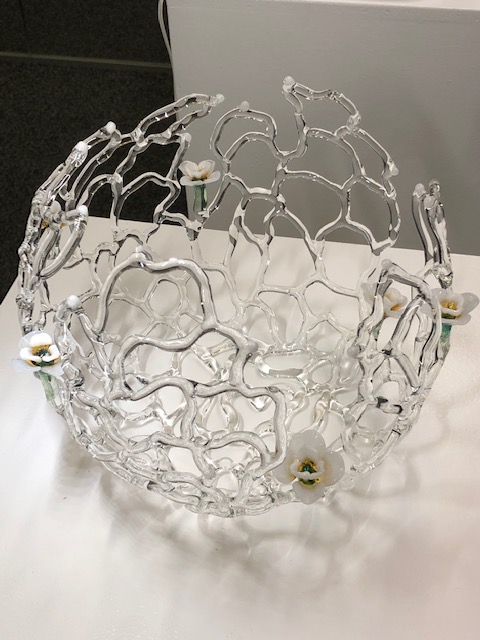 Susan er en fantastisk dygtig kunsthåndværker, der både laver traditionel glaskunst artikler som smykker og fade, men også glaskunst i en meget speciel og elegant form, hvor glasset er bygget op i elegante netkonstruktioner. Der er virkelig basis for en smuk julegave til den, man holder af – eller til sig selv.