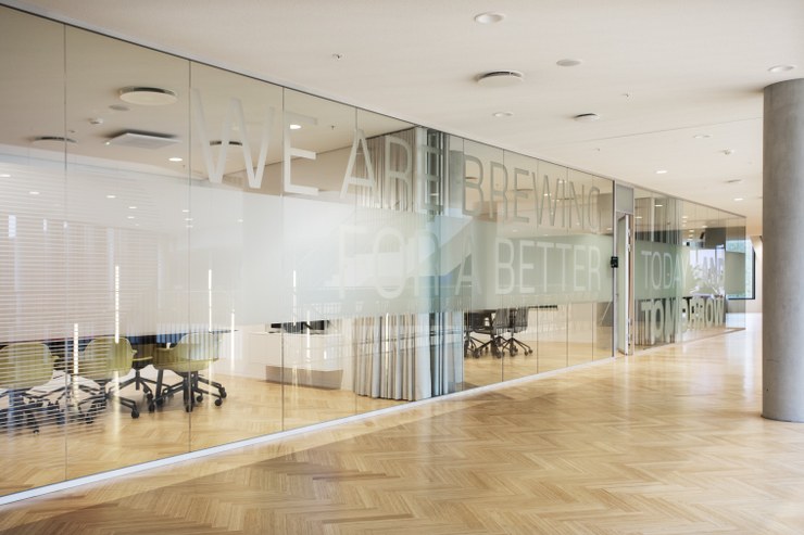 – Carlsberg er en ikonisk dansk virksomhed med en lang historie, og vi er derfor stolte over at kunne bidrage til byggeriet af det nye hovedkontor, så bryggerivirksomheden kan fungere i mere tidssvarende rammer. Her har vi leveret specialdøre i glas med en farvet lysegrå ramme, som er produceret på vores egen produktionslinje til hærdet emaljeret glas i stort format. Den farvede kant er med til at give et både klassisk og moderne udtryk, siger Christina Volhøj, der er intern salgschef hos Glaseksperten, og fortsætter:
