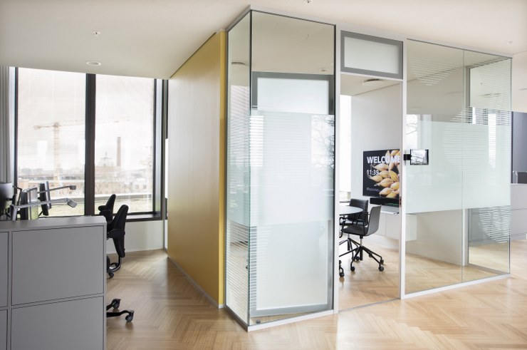 – Derudover har vi produceret Silent-ruder og 1.500 kvadratmeter lydlamineret glas til indervægge, som dæmper støj fra tilstødende lokaler med op til 42 decibel. På den måde er det muligt at leve op til både design og arbejdsmiljøkrav samtidig med, at der er mange kunder og forretningspartnere i lokalet ved siden af. Brandvæggene hjælper desuden med at overholde de strengeste sikkerhedskrav, hvis uheldet skulle være ude, og der opstår brand.