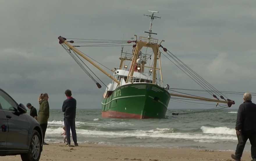 blevet et tilløbsstykke, siden den sent mandag aften stødte på grund ud for vestkysten mellem Løkken og Nørre Lyngby.