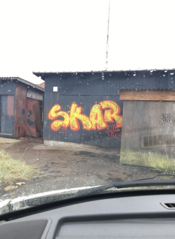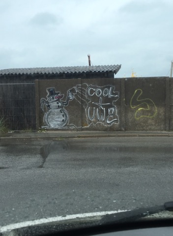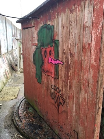 Hvorvidt det er kunst eller hærværk, eller måske snarere noget midt imellem, skal vi lade andre om at vurdere, idet graffitien nedenfor er fra Jernbanegade og Jollehavnen.