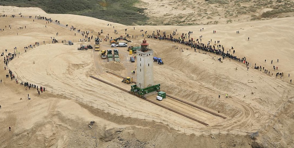 Rubjerg Knude Fyr har efter seks timers arbejde sat sig på sin nye plads, hvor det efter planen skal stå de næste 40 år og skue udover Vesterhavet.