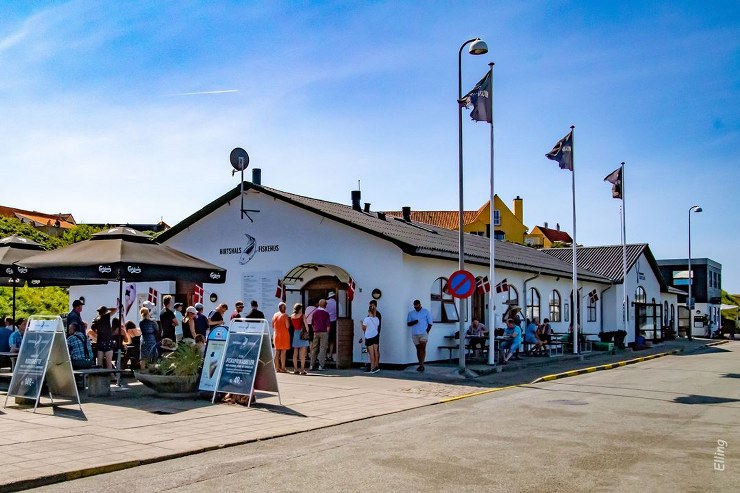 Travlhed ved udleverings”gluggerne” i Hirtshals Fiskehus…rygtet vil vide, at publikum stadig under Wafande sidst på aftenen ville have…fisk…