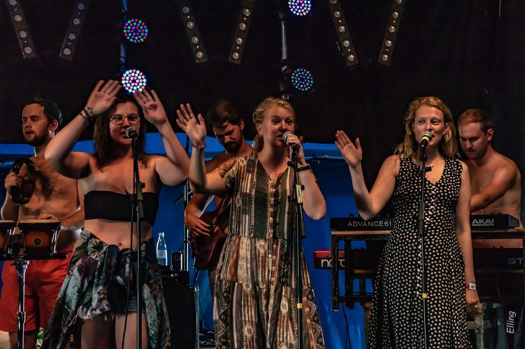 I teltet under trappen var der torsdag godt nok varmt, men det afholdt ikke de unge nordmænd fra Leisure Suit Lovers i at teste lyd og præsentation, inden det bliver alvor fredag aften kl. 21.00.
