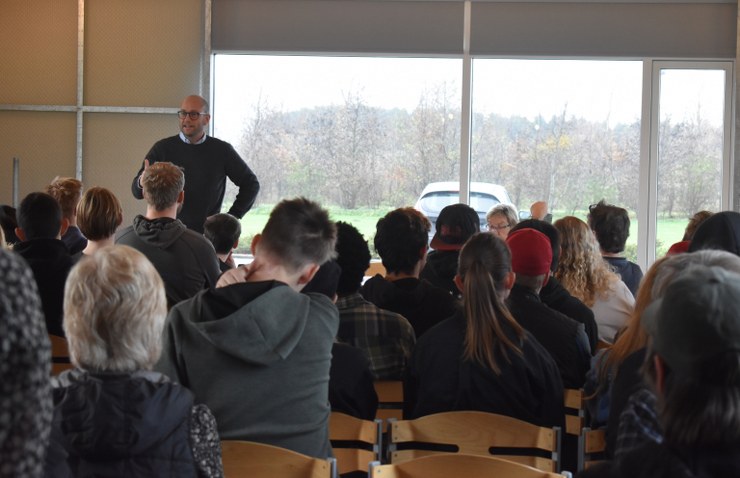 Marianne Jelveds (B) og Rasmus Prehns (S) besøg på Hjørring Produktionsskole var en del af de to politikeres omrejsende demokratikaravane, hvor målet er at besøge en række uddannelsesinstitutioner med det formål at engagere flere unge i demokrati og politik.