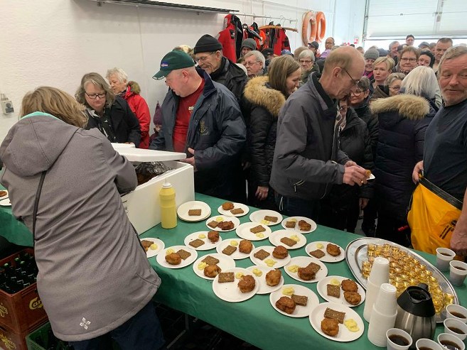 – Jeg skylder også at fremhæve Alice og hele holdet med fiskefrikadellerne samt serveringen, som fortjener en klapsalve. Ligesom jeg for husfredens skyld skal nævne min kone Janice, som sammen med børnene i Tirsdagcaféen har lavet kronerne, lød det fra Peter Jacobi.