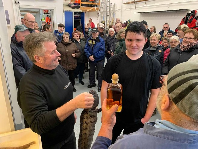 Dernæst kunne alle mand og i hver fald en enkelt kvinde kravle tilbage på kajen, hvor alle dog ikke viste sig at være lige tørre. I hvert fald kunne Peter Jacobi kompetent assisteret af Claus Neve Olsen umiddelbart efter kåre ikke bare Kenneth på 15 år, men også hans mor Ditte Agnete Winther Andersen til henholdsvis kattekonge og ditto dronning, idet begge hver fik overrakt en friskfanget havkat og en flaske hjemmelavet bjesk produceret i Tornby.