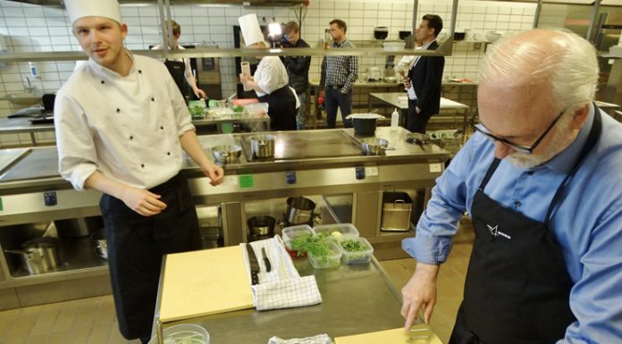 -Som noget helt særligt havde vi lokket skatteministeren i køkkenet, hvor han skulle deltage i en Masterchef-klasse sammen med vores direktør Neil Jacobsen. Udfordringen var sammen med en kokkeelev at kreere en ret på 30 minutter og efterfølgende bedømmes, fortæller en af dagens dommere, uddannelseschef på Gastronomi & Service Dennis Kindberg. Den anden strenge og retfærdige dommer var faglærer Thomas Riis.