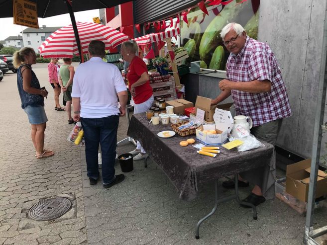 Før det kom til den helt store lodtrækning var der imidlertid masser af smagsprøver på blandt meget andet lækker dansk honning og øl, der blev skænket op af Ulla Gajhede.