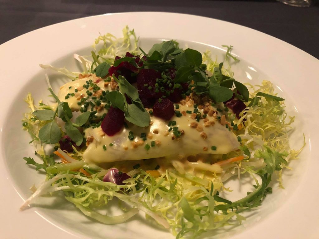 Alt er ved det gamle med gode, danske klassikere i rigelige mængder, forsikrer Laila Zielke. Selvfølgelig er der også spændende nyheder som blandt andet den lækre ret med rimmet torsk, der ses ovenfor.
