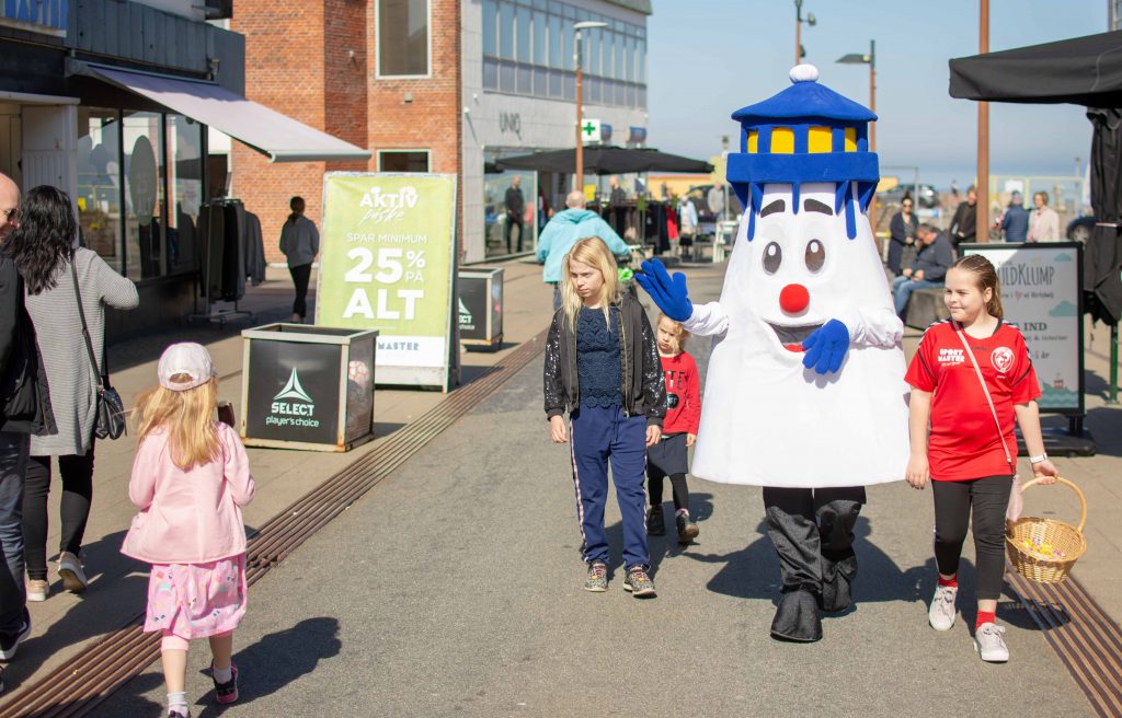 Nordsøens store, men søde maskot Klumpe, der deler balloner og malebøger ud til alle børn.