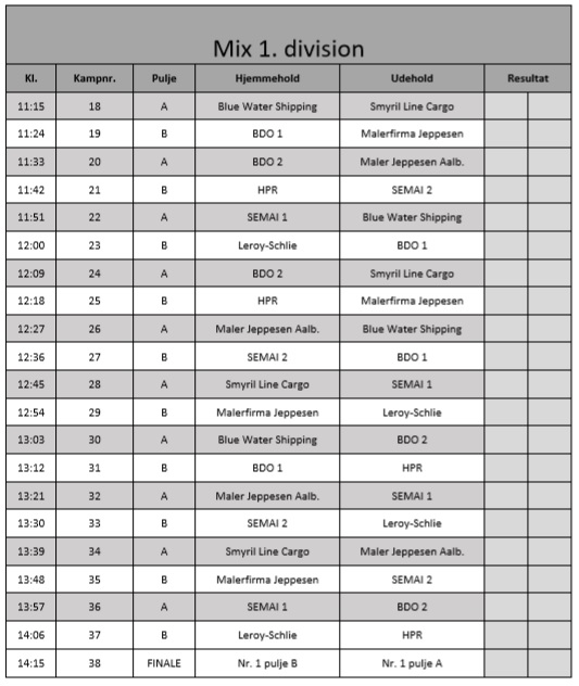 BEMÆRK – særregler for MIXHOLD: • Mål scoret af damer tæller dobbelt. • Der skal minimum være en dame på banen. (Hvis et hold har en spiller udvist, ses bort fra denne regel under udvisningen).