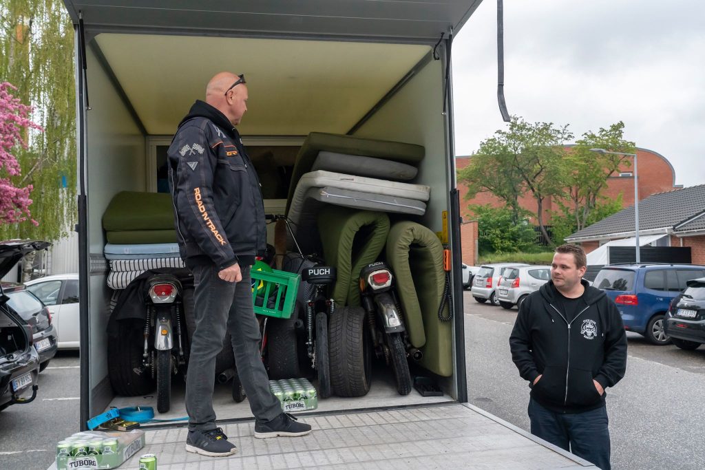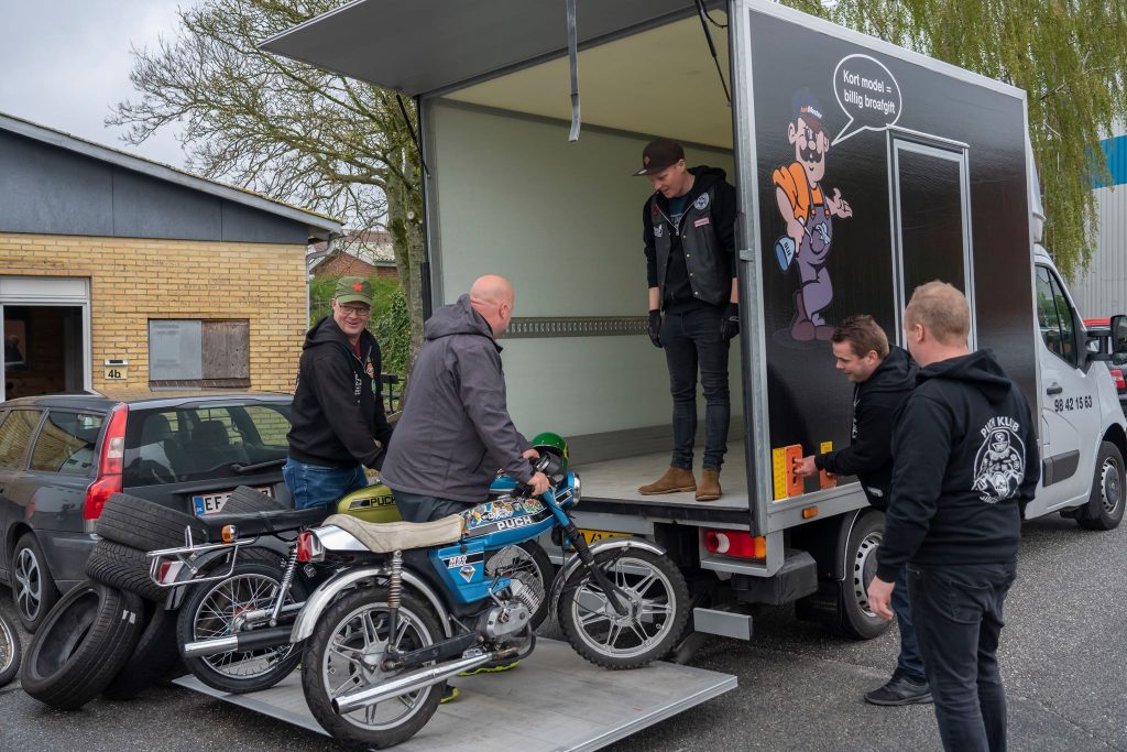 For ikke at overbelaste de gamle knallerter havde klubben fra Bindslev lejet en lille lastbil, som den 1. etape til Bollebygd forgår med.
