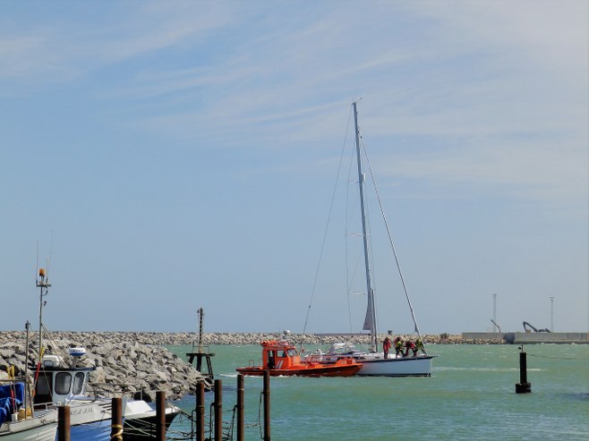 Hirtshals Redningsstation fik heldigvis hurtigt assisteret og på grund af den hårde vind med noget besvær trukket sejleren fri, hvorefter skibet nu ligger ved Pier II Øst.
