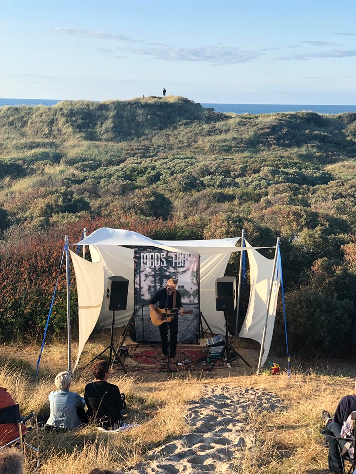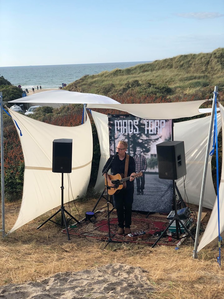 Wonderland Band trak sidste fredag masser af glade gæster og store smil til Musik i Sandet i Tversted. I går aftes var turen så kommet til Mads Torp, der viste sig også at kunne lokke rigtig mange turister og lokale ud i marehalmen og sandet ved Det Blå Ishus nord for Tannishus.
