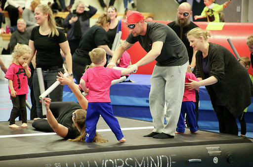 – Vi er ved at drukne i gymnaster og bedsteforældre, der kommer og kigger med, så Vendihallen er perfekt for os, for her kan alle få en siddeplads, og der er omklædningsrum og toiletter nok til alle, fortæller Mette Brath, en af de begejstrede instruktører, der selv var med til opvisningen.