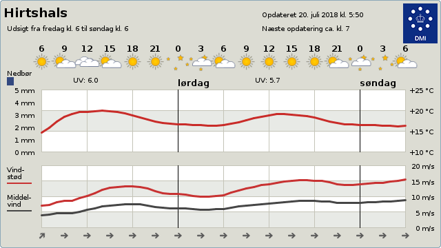 Vinden bliver jævn til frisk, men ved kysten stedvis op til hård fra vest. I aften til startskuddet fortsat solrigt og i nat til dels klart vejr, men med risiko for tågebanker, som heldigvis er drevet bort med eventuelle tømmermænd lørdag formiddag.