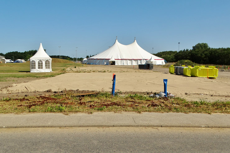 Telte bliver rejst, streger bliver slået, og forberedelserne koger om kap med sommervarmen.