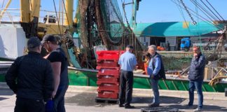 Fiskerikontrollen tjekkede i dag losningen af en hollandsk bomtrawler i Hirtshals Havn.