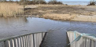 Den seneste tids store mængder regn har fået Hjørring Kommune til at løfte hængebroen over Uggerby Å op på land, inden den blev helt oversvømmet.