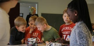 Eleverne i 1. A på Hirtshals Skole legede onsdag med LEGO Mindstorms i Horne.