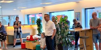 Fire årtier har Henrik Hedegaard været ansat hos Nordjyske Bank, hvilket fejres i filialen på Jørgen Fibigersgade i Hirtshals.