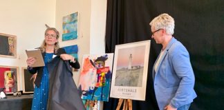 Afsløringen af Hirtshals Turistforenings plakat var et af flere festlige højdepunkter ved åbningen skærtorsdag af påskeudstillingen i Sømandskirken.