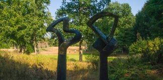 2 DANSERE (af Peter Hesk) står og spejder misundeligt over på to golfspillere, som til gengæld muligvis misunder det lidt fastgroede par deres placering i den skyggefulde skov, der omkranser Dronninglund Kunstcenter, og som visse steder giver særlige udfordringer for de golfspillende...