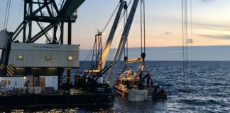 Kranen Sanne A fra J. A. Rederiet skal forsøge at hæve fiskefartøjet AG19A Synne.