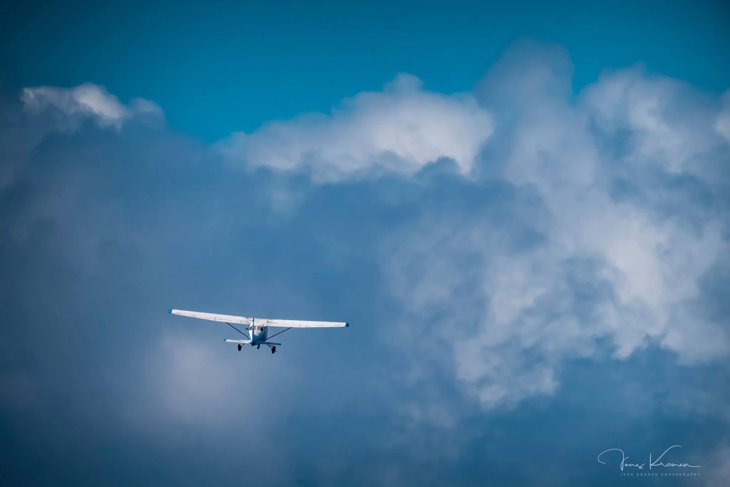 Planen var tre spring i timen for at nå målet. Thomas har været super motiveret, og gutterne fra Faldskærmsklubben Nordenfjords gjorde alt for at hjælpe deres instruktøraspirant. De skulle pakke skærme for ham, forsyne ham med mad og drikke, men en ting kunne de ikke – sørge for gode vejrforhold.