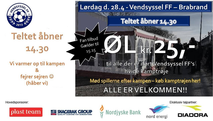 Der er kampstart på Nord Energi Arena lørdag klokken 15.30. Billetter kan købes på www.shop.vendsysselff.dk. Fanteltet åbner en time tidligere.