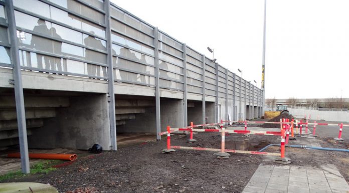 De mobiler tribuner er fjernet, fordi Hjørring Kommune nu har indledt arbejdet med for 17,5 millioner kroner med at bygge nye tribuner blandt andet for at skabe plads til flere tilskuere – også siddende under tag.