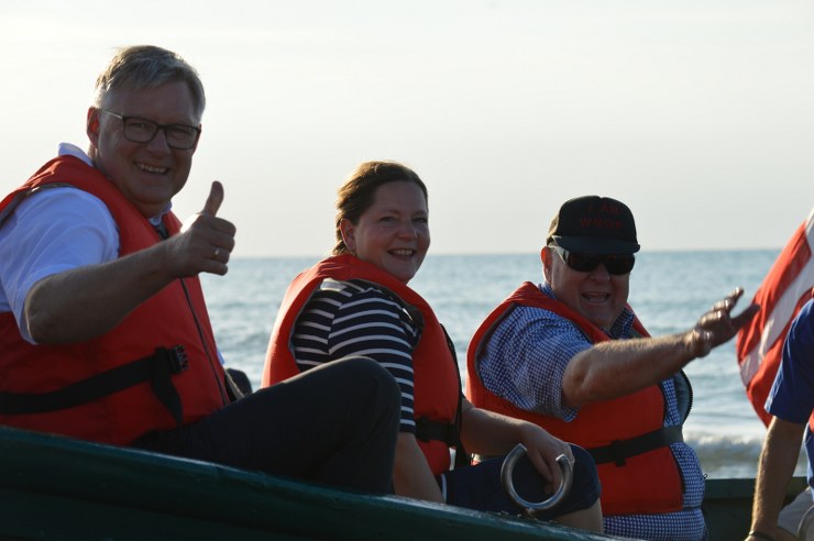 Sejlturen gik fint, idet mødets referent Jan Jensen var blevet bedt om at deltage og tage nogle billeder fra sejladsen. Det blev en blandet forsamling ombord, for de 6 byrådsmedlemmer blev en del af den samlede besætning, som normalt består af 20 mand + en Styrmand og en ”Øser”.